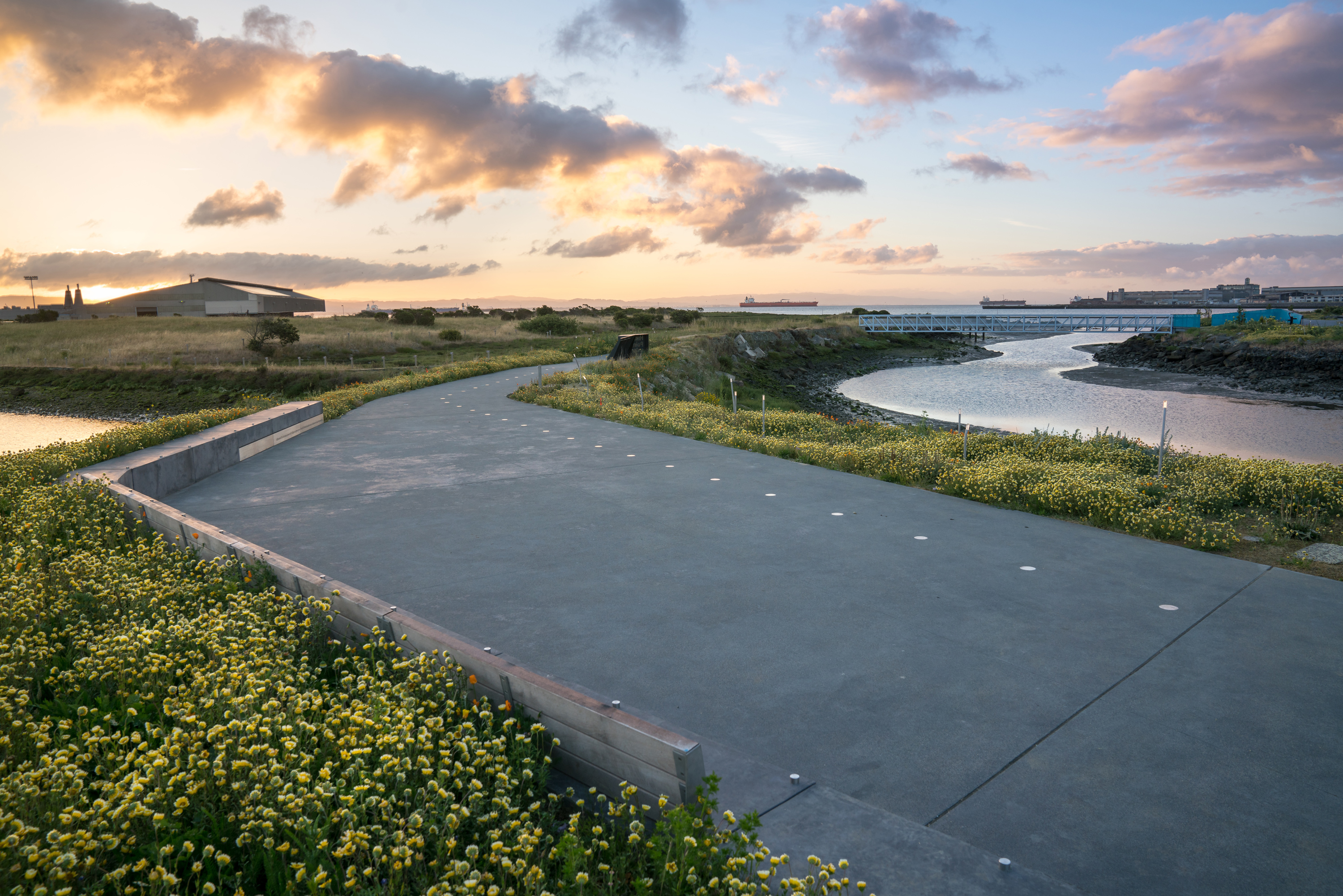 and , are part of Center for Architecture + Design's new exhibition titled This exhibition explores how San Francisco’s built environment has transformed over the past 25 years. Through snapshots of new and renewed places, it reveals changing patterns in how we live, work, move, and gather, offering glimpses of both familiar icons and unexpected spaces in a city that is always evolving.The Hunters Point Shoreline is a public open space born out of a far-reaching public access, interim use, and community engagement strategy for the former Hunters Point Power Plant site. For this historically disenfranchised community, improving the shoreline edge of this site represents an important step forward in a decades-long struggle for environmental justice.