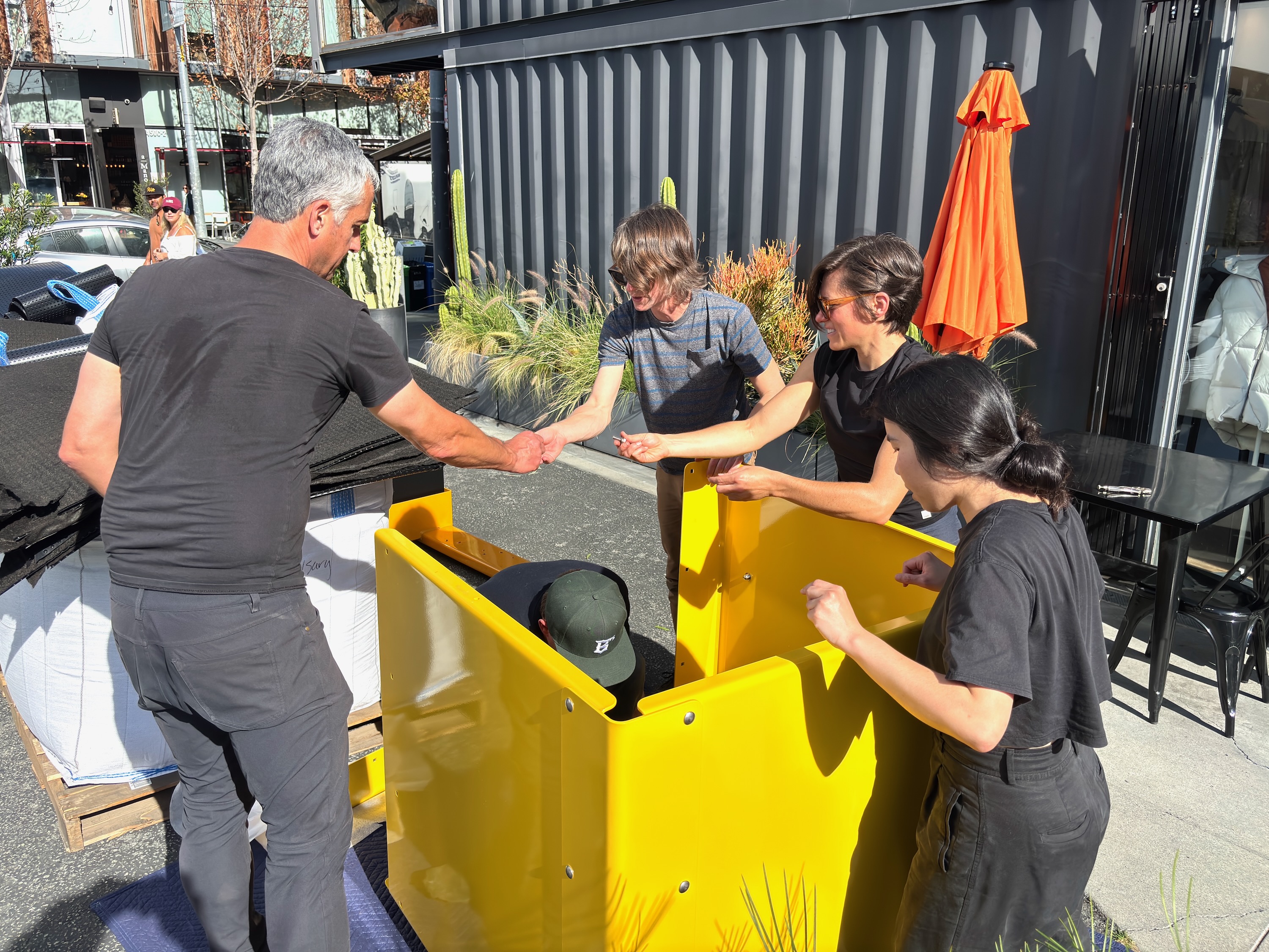 planter and seating system, is a modular, re-combinable urban greening system allowing for "popup park" style activations of streets, sidewalks and plazas across San Francisco and beyond. The system allows cities to create temporary, micro-local public green spaces, fostering community gathering environments and bringing warmth and life to our streetscapes.The first deployment of the KINDRED2 planters is at